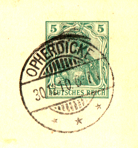 Die 3. Fortsetzung zur Posthistorie in Holzwickede beleuchtet die hiesigen Poststrukturen, die vor 106 Jahren – im Jahr 1896 – ganz wesentliche Veränderungen erfuhren! Schon die oben abgebildeten beiden Poststempel zeigen einmal in der sog. Zweikreisgitterform mit Datumsbrücke eine neue gültige Form mit ihrem Ersteinsatz ab 1896 sondern dies auch in Holzwickede und Opherdicke. Beide Stempel kamen zudem in neuen Poststellen zum Einsatz! Aber lesen Sie selbst.