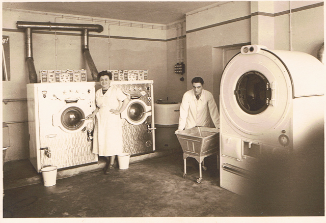 Vorab schon einmal ein Foto eingereicht von Herrn J. Joy  aus seinem früheren Wäschereibetrieb in der Bahnhofstraße  damals wohl  Hausnummer 6 und das Bild stammt aus dem Jahr 1954.