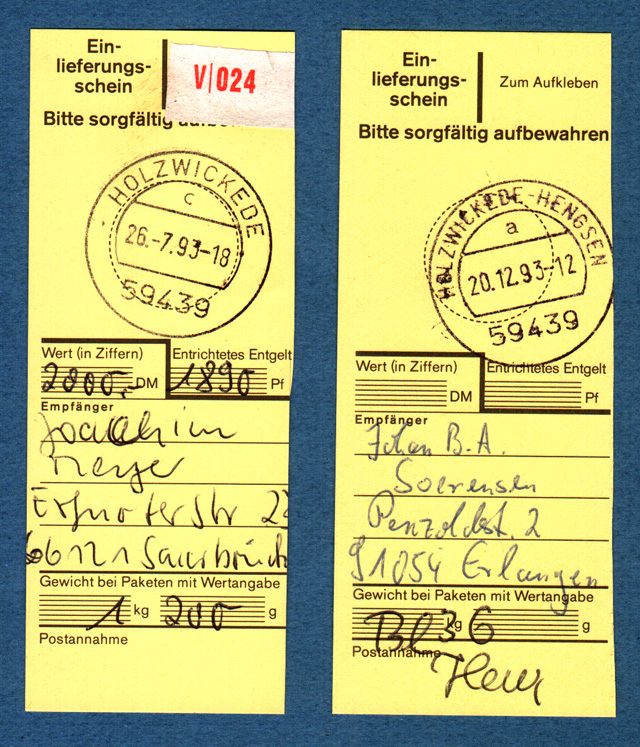 Auch diesmal stehen Veränderungen des Postleitzahlensystems im Vordergrund bedingt durch die glückliche Wiedervereinigung Deutschlands. Mit großem organisatorischem Aufwand wurde bundesweit am 1.7.1993 das 5-stellige PLZ – System eingeführt und kann auch am Beispiel Holzwickede dokumentarisch festgehalten werden.